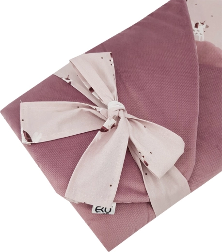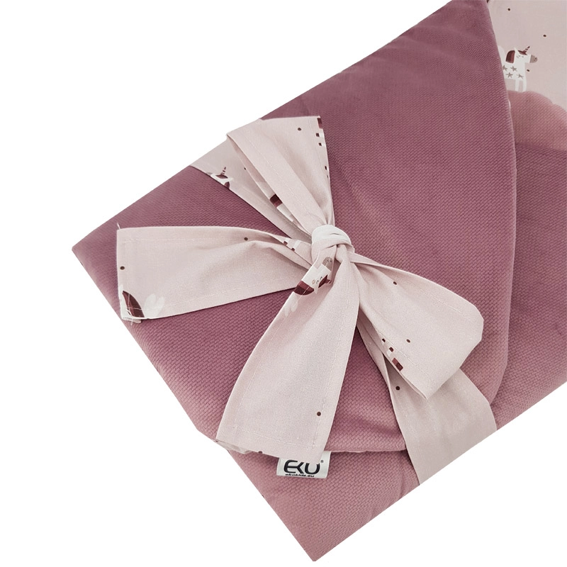 Această păturică de înfășat EKO premium este concepută pentru înfășarea sigură și confortabilă a nou‑născutului. Partea exterioară din velvet moale este plăcută la atingere, iar căptușeala interioară din bumbac de calitate cu imprimeu digital este respirabilă și blândă cu pielea sensibilă. Inserția de cocos detașabilă integrată, dar ușor de scos, îi ajută pe părinți să țină bebelușul mai sigur și oferă formă păturicii.