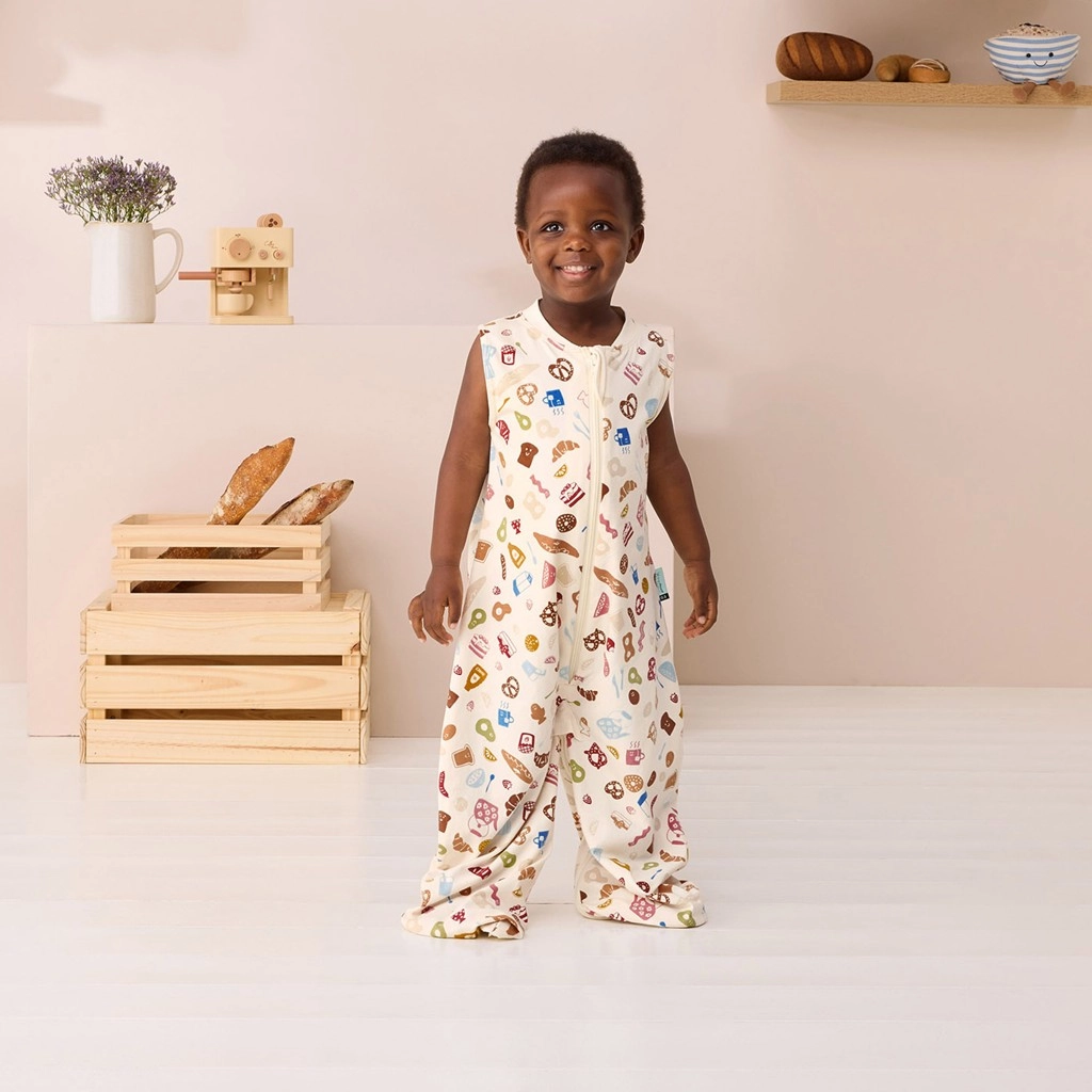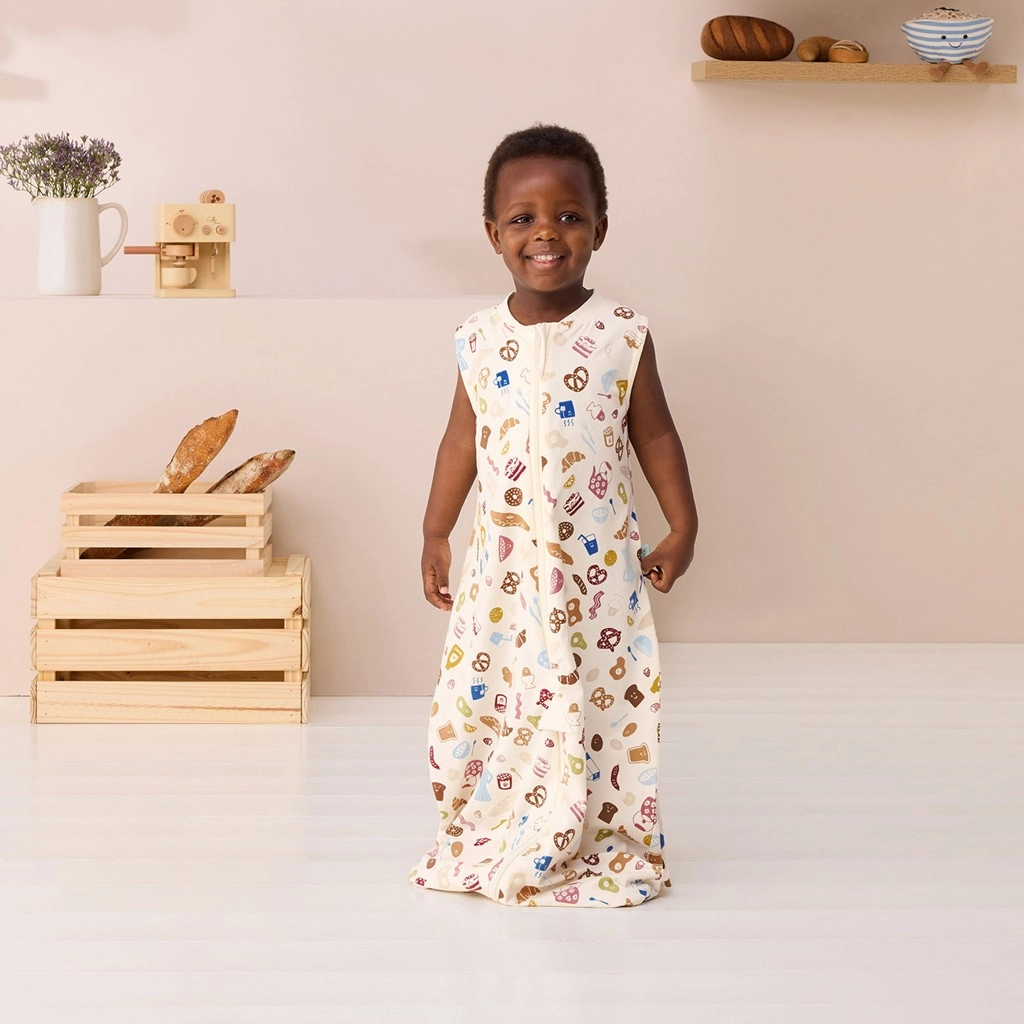 ErgoPouch Sleep Suit Bag 2 în 1 combină siguranța sacului de dormit cu libertatea salopetei. Țesătura exterioară din bumbac organic certificat GOTS (400 TC) amintește de lenjeria de pat de calitate – este netedă, plăcută și reglează excelent temperatura. Datorită panourilor elastice laterale și de la umeri, copilul se mișcă liber fără risc de încâlcire, iar partea inferioară tip clopot susține șolduri sănătoase. Designul Bon Appetit luminează camera cu un imprimeu jucăuș.