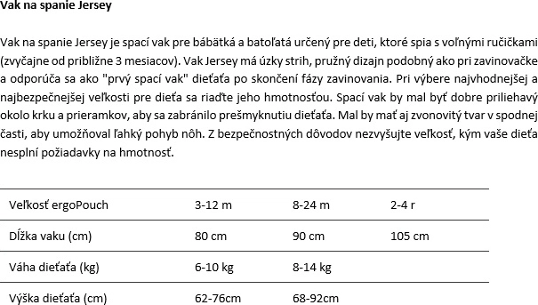 Sacul de dormit ErgoPouch Jersey cu mâneci este conceput pentru bebeluși și toddleri de la cca 3 luni. Croiala îngustă și elastică urmează delicat corpul, în timp ce partea inferioară evazată lasă șoldurilor libertate de mișcare. Bumbacul organic cu certificare GOTS și vâscoza de bambus asigură respirabilitate, reglarea temperaturii și confort pe tot parcursul nopții. Valoarea 1 TOG este ideală pentru utilizare pe tot parcursul anului în camere încălzite normal și elimină nevoia altor pături.