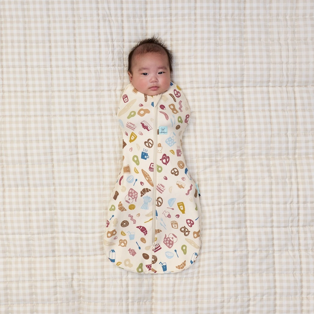 Înfașa și sacul de dormit 2‑în‑1 Cocoon Bon Appetit oferă izolație ușoară 0,2 TOG, ideală pentru camere cu temperaturi de 24 °C și peste, fără pături suplimentare. Zona toracică este proiectată la 1,0 TOG pentru o respirație sigură fără supraîncălzire. Bumbacul organic GOTS cu căptușeală din bambus și un strop de elastan este respirabil, non‑toxic (vopsele pe bază de apă) și blând cu pielea nou‑născuților și a copiilor cu eczeme.