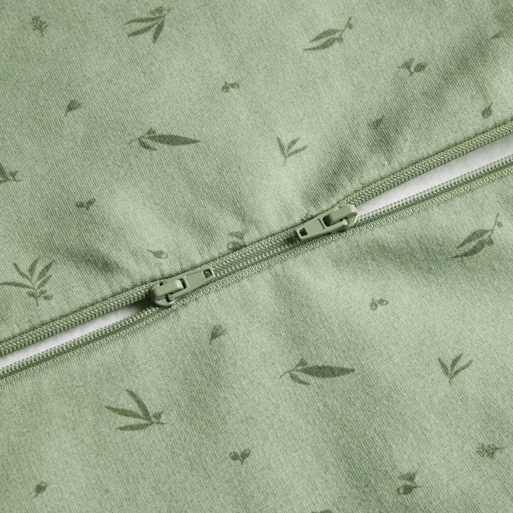 Stratul exterior din bumbac organic GOTS cu adaos de elastan și căptușeala din bambus sunt respirabile, non‑toxice (vopsele pe bază de apă) și blânde chiar și cu pielea predispusă la eczeme. Fermuarul cu dublu sens simplifică schimbarea pe timpul nopții, iar capsele de pe umeri permit trecerea rapidă de la înfășă la sac de dormit cu mâini libere la primele semne de rostogolire. Partea inferioară evazată este aprobată de International Hip Dysplasia Institute ca „healthy‑hip”.