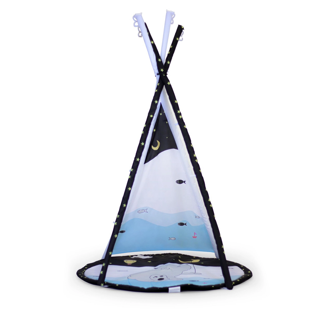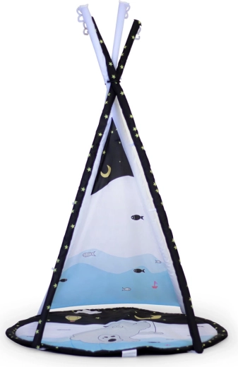 - 3 moduri de joacă: saltea cu bară, umbrire cu copertină, cort tip teepee
