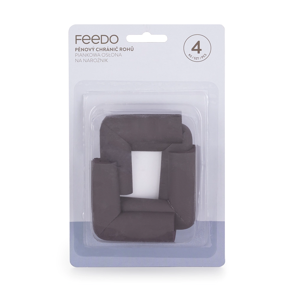 Siguranța copiilor pe primul loc – protecțiile moi din spumă pentru colțuri Feedo ajută la prevenirea loviturilor dureroase de muchiile ascuțite ale mobilierului. Datorită finisajului maro, se potrivesc perfect cu suprafețele mai închise la culoare și nu afectează aspectul interiorului.
