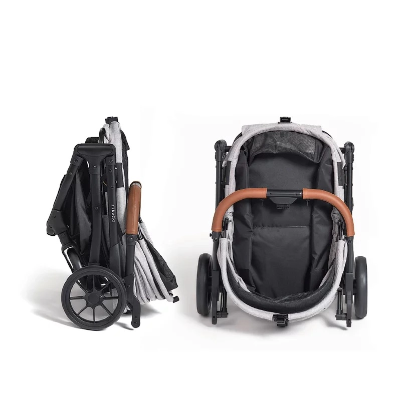 Ventilația este asigurată de fereastra din plasă, iar capotina se poate deschide în sensul de mers sau invers pentru o supraveghere sau vizibilitate mai bună a animalului. Siguranța este garantată de lesa interioară cu inel D, în timp ce roțile pivotante amortizate din EVA fac față și suprafețelor mai dificile. Coșul mare susține până la 3 kg de accesorii, iar mânerul din piele PU este plăcut la atingere.
