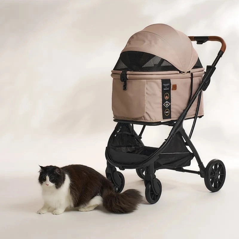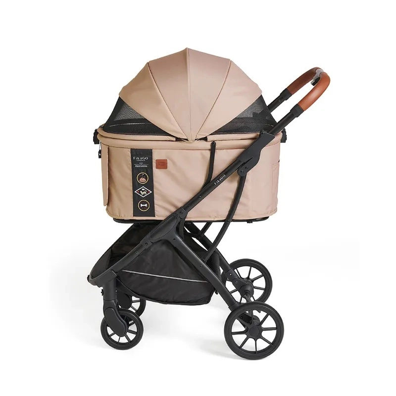 FIKAGO Agile Huggy în culoarea bej este un cărucior bine gândit pentru pisici și câini, care combină stilul, practicitatea și siguranța. Datorită cadrului ușor din aluminiu și plierii rapide cu o singură mână, îl depozitezi ușor în portbagaj, iar după pliere stă singur. Cuva extra mare oferă confort maxim animalelor de companie, în timp ce capotina impermeabilă din materiale reciclate protejează de soare și praf.