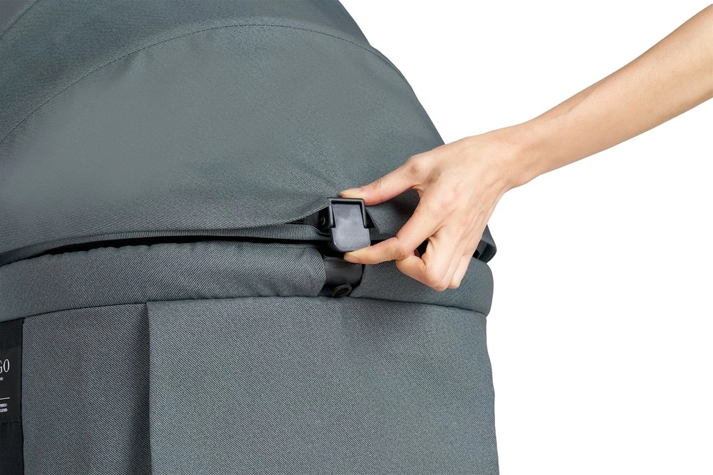Lacătul integrat al cadrului menține căruciorul închis în siguranță în timpul transportului și depozitării.