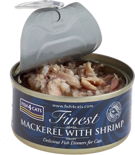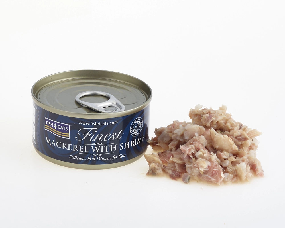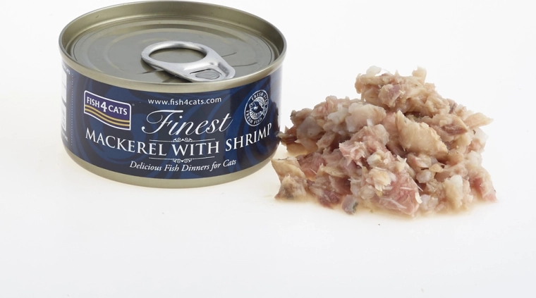 Fish4Cats cu macrou și creveți este o hrană suculentă pe care pisicile o adoră. Rețeta cu 65% macrou și 5% creveți oferă o sursă naturală de omega-3, susține blana și pielea sănătoase și este, totodată, blândă cu digestia. Datorită compoziției simple, fără adaosuri inutile, este ideală și pentru pisicile sensibile.