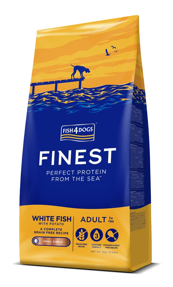 Căutați o hrană gustoasă și blândă pentru câinii mici adulți? Fish4Dogs din pește alb cu cartofi este echilibrată, fără cereale și bazată pe ingrediente de calitate din pești albi sezonieri din Atlanticul de Nord. Combinația de făină de somon și ulei de somon oferă în mod natural omega-3 pentru vitalitate, piele și blană, în timp ce cartofii și amidonul de mazăre asigură o digestibilitate ușoară.