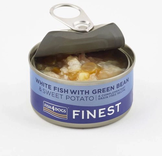 Oferă câinelui tău o porție echilibrată și savuroasă de natură. Conserva FISH4DOGS cu pește alb, cartofi dulci și fasole verde aduce proteine de calitate din pește și fibre fine din legume. Datorită conținutului natural scăzut de grăsimi, este ideală și pentru câinii cu digestie sensibilă.