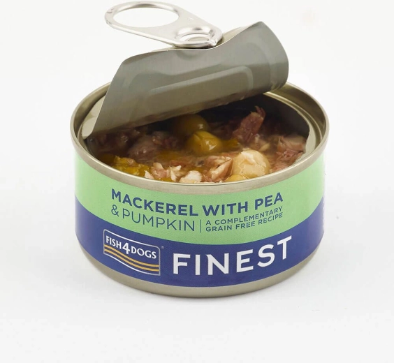 Conserva pentru câini FISH4DOGS cu macrou, dovleac și mazăre oferă o hrană echilibrată, gustoasă și ușor de digerat, din pește oceanic de calitate și legume. Rețeta fără cereale și fără coloranți sau conservanți adăugați este potrivită și pentru câinii sensibili și ajută la susținerea unei digestii sănătoase.