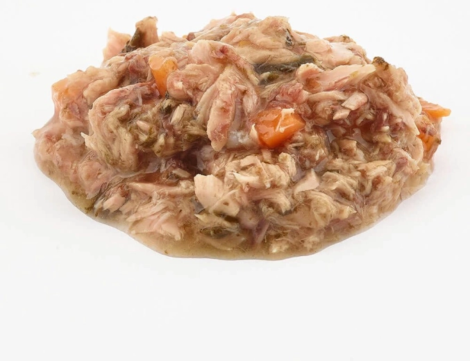 Această conservă suculentă combină 50% ton cu spanac și morcov nutritive. Datorită ingredientelor simple și rețetei fără cereale, este potrivită și pentru câinii sensibili. Textura ușor digerabilă va încânta și papilele celor mai mofturoși.