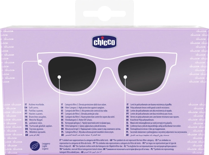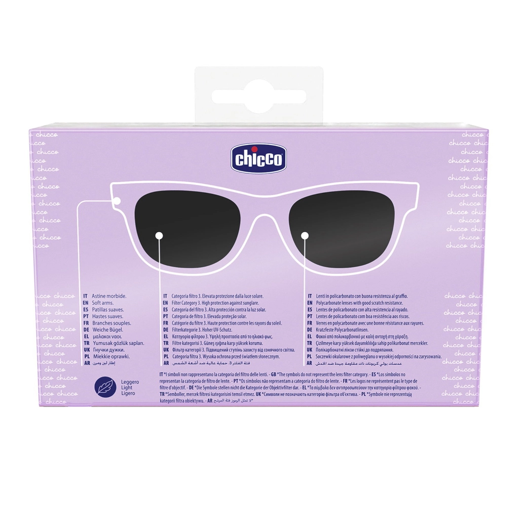 Ochelarii de soare pentru copii CHICCO, la modă, oferă protecție 100% UVA/UVB și au filtru întunecat de categorie 3. Datorită ramelor flexibile, hipoalergenice și netoxice, sunt comozi și siguri pentru purtare zilnică. Policarbonatul rezistent protejează împotriva impacturilor și zgârieturilor, iar în pachet este inclus și un toc textil practic.