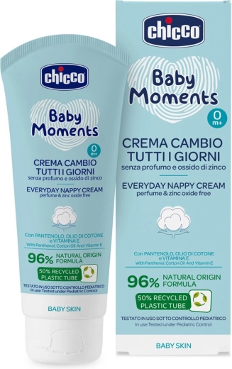 Cremă delicată pentru îngrijirea zilnică a fundulețului bebelușului de la marca Chicco, cu 96% ingrediente de origine naturală. Are o textură lejeră, fără parfum, care se întinde ușor și este potrivită pentru pielea sensibilă încă de la naștere (0m+). Conține ulei din semințe de bumbac, pantenol și vitamina E pentru calmarea și hidratarea pielii la utilizarea zilnică.