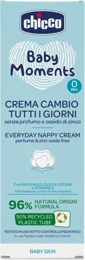 Crema Chicco Baby Moments, fără oxid de zinc, este concepută pentru îngrijirea blândă zilnică a pielii sensibile a bebelușilor în zona scutecului. Textura lejeră, ușor de absorbit, lasă pielea fină, hrănită și protejată, fără peliculă albă. Formula fără parfum minimizează riscul de iritații și este testată dermatologic pe piele sensibilă.