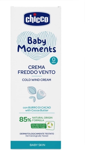 Delicata cremă protectoare CHICCO Baby Moments protejează pielea sensibilă a bebelușului împotriva frigului și vântului. Formula sa, cu 81% ingrediente de origine naturală, unt de cacao și unt de shea, pantenol și uleiuri Omega-3, întărește bariera pielii și lasă tenul catifelat și hrănit. Fără parabeni, coloranți și alcool, cu parfumul delicat Baby Moments. Testată dermatologic și oftalmologic, potrivită de la naștere.