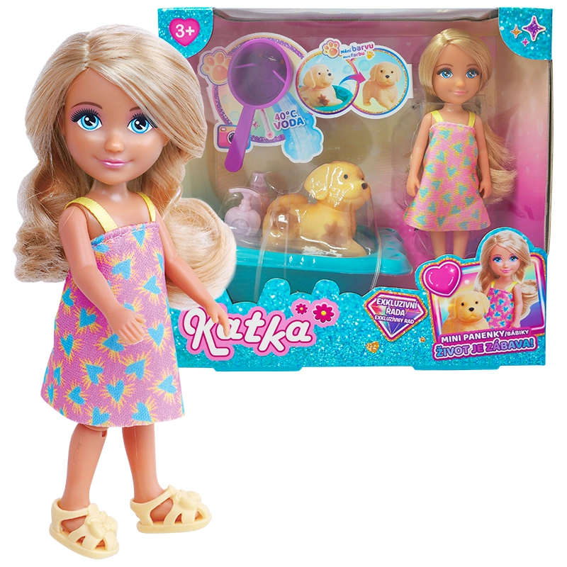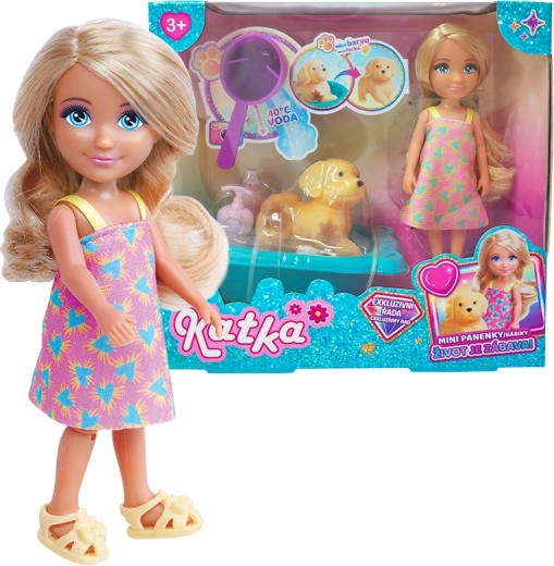 Descoperă farmecul jocului cu păpușa Katka, care vine cu prietenul ei cățel și o cadă stilată. Acest set susține jocul creativ, îngrijirea animalelor de companie și dezvoltarea motricității fine. Culorile vii, părul lung care poate fi pieptănat și calitatea execuției asigură joacă sigură și de durată pentru copii de la 3 ani.