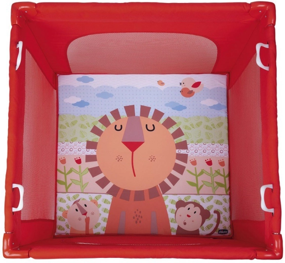Țarcul pentru copii Chicco cu pătură de joacă Lion îmbină siguranța, confortul și stimularea ludică într-un singur produs. Salteaua colorată și moale, cu motive de animăluțe, susține dezvoltarea simțurilor și poate fi folosită separat, în afara țarcului. Părțile laterale din plasă asigură circulația aerului și vizibilitatea, iar intrarea cu fermoar facilitează accesul.