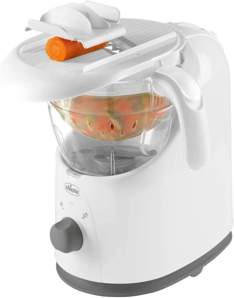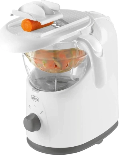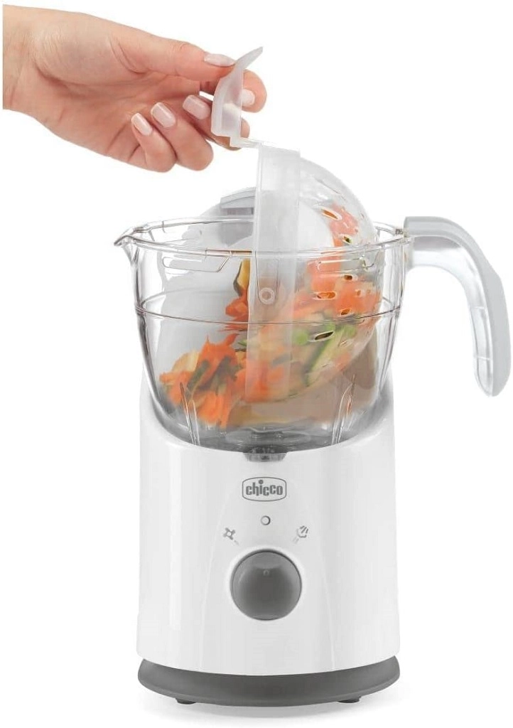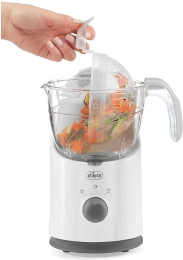 CHICCO Easy Meal este ajutorul ideal pentru prepararea zilnică a meselor proaspete pentru copii. Construcția unică a bolului asigură aburire rapidă și uniformă cu păstrarea maximă a vitaminelor și a gustului. Datorită sistemului basculant, golești ușor conținutul gătit direct în blender cu o singură mână și servești în numai un minut.