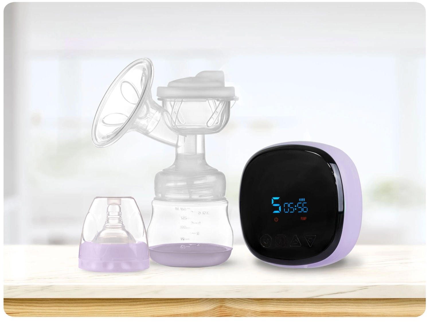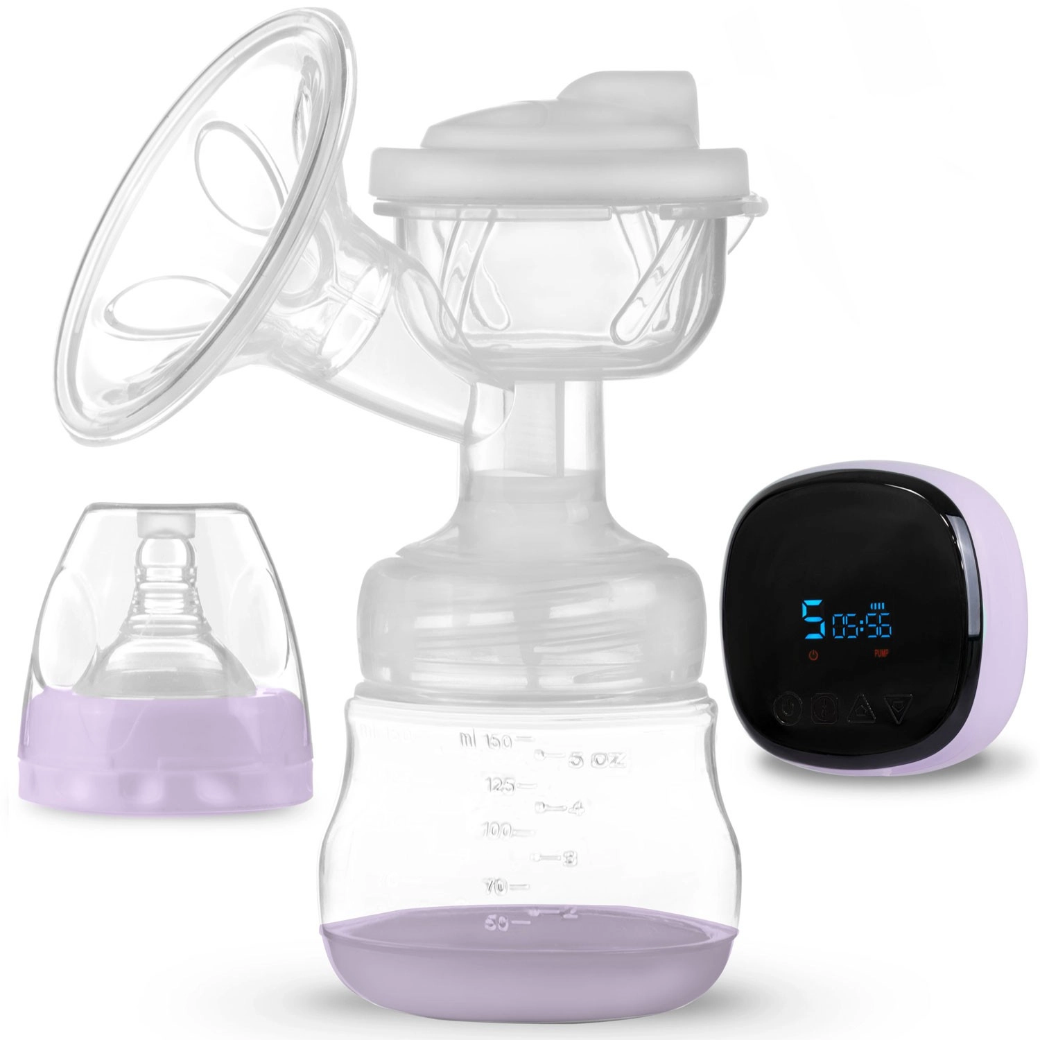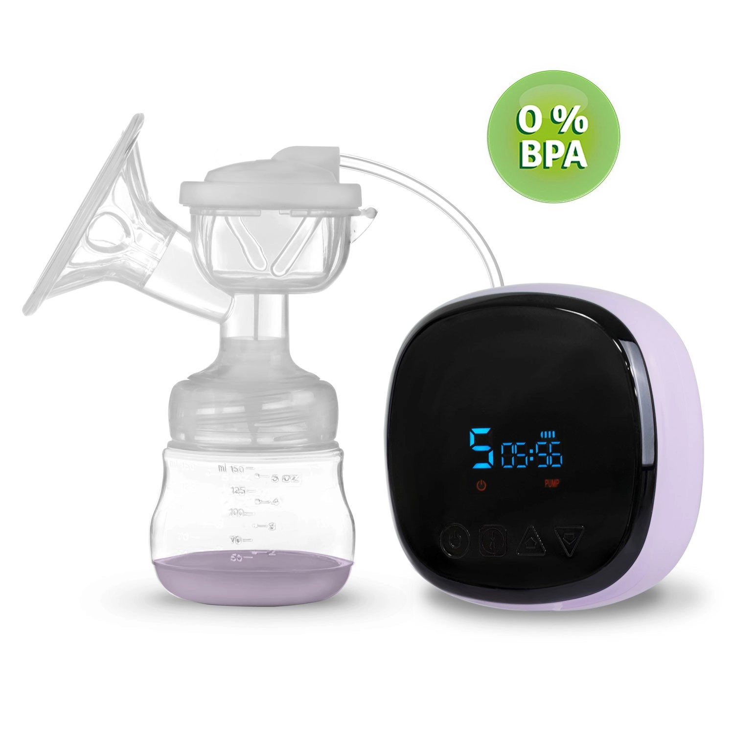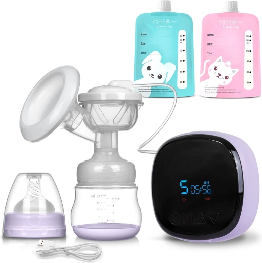 Datorită panoului de control intuitiv cu LCD, alegeți modul (stimulare, masaj, extragere profundă), ajustați intensitatea și verificați nivelul bateriei. Pompa este foarte silențioasă, se demontează și se curăță ușor. Este fără BPA pentru siguranța maximă a bebelușului. În pachet găsiți biberon de 150 ml, tetină, adaptor de alimentare și 2 pungi sterile pentru lapte cu capace cu înșurubare.