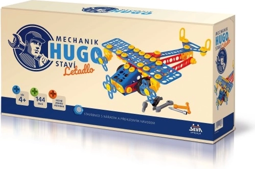 Set de construcție HUGO Avion cu unelte 144 piese, plastic, în cutie 31x16x7 cm