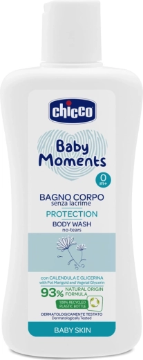 - Gel de duș pentru corp (200 ml, 93% ingrediente naturale) – curăță delicat și lasă pielea fină și plăcut parfumată. Respectă echilibrul hidrolipidic al pielii sensibile a bebelușului.