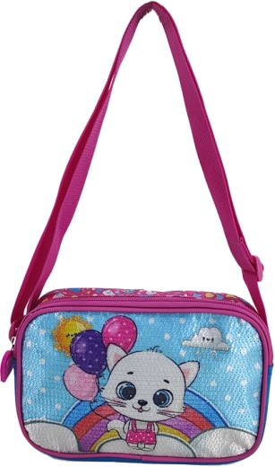 O geantă de umăr pentru copii adorabilă, cu motiv de pisicuță și baloane colorate, care va încânta orice mică domnișoară. Este ușoară, practică și ideală pentru excursii, la grădiniță și la cumpărături. Datorită dimensiunilor sale compacte se poartă confortabil și poate găzdui toate mărunțișurile necesare.