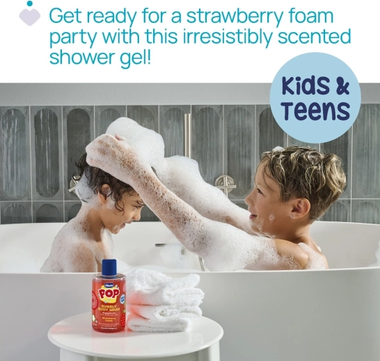 Transformă baia într-o distracție cu gelul de duș CHICCO POP, blând și spumos, cu o aromă irezistibilă de căpșuni. Ideal pentru copii și adolescenți, oferă o îngrijire jucăușă a pielii, îmbogățită cu extract de căpșuni. Formulă vegană și fabricat în Italia.