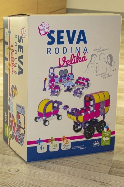Seturile de construcție SEVA sunt un clasic ceh – pe piață din 1979, cu popularitate în continuă creștere. Piesele variabile le permit copiilor și adulților să construiască vehicule, mașini, avioane, clădiri, mobilier sau o bucătărie. Acest set Rodina mare oferă un conținut cu adevărat generos pentru ore întregi de joacă creativă.