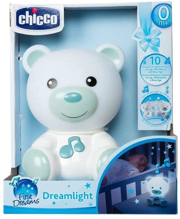 Transformați rutina de seară într-un ritual plăcut. Ursulețul Chicco luminează delicat camera copilului și oferă o senzație de siguranță. Doar răsturnați-l și se va aprinde cu o lumină plăcută care nu deranjează somnul. Pentru o relaxare și mai bună puteți activa până la 10 minute de melodii liniștitoare.