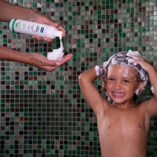 - Șampon și balsam 2în1 pentru copii, sub formă de spumă