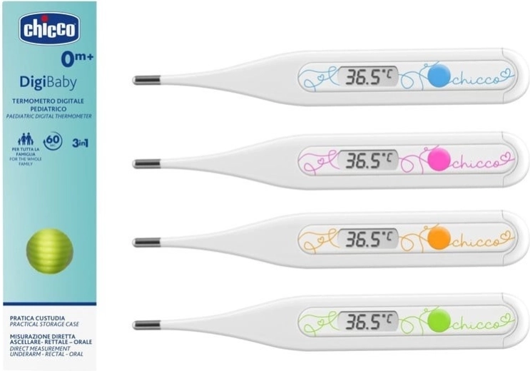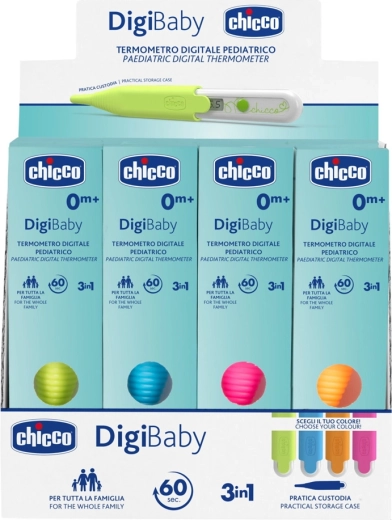 Termometrul digital Chicco Digi Baby verde este conceput pentru măsurarea blândă și fiabilă a temperaturii corporale la cei mici. Vârful modelat special sporește confortul în timpul măsurării, iar utilizarea universală (axilară, rectală, orală) asigură flexibilitate în orice situație. Datorită semnalului sonor la finalizarea măsurării și alarmei de febră, veți avea întotdeauna control clar asupra rezultatelor.