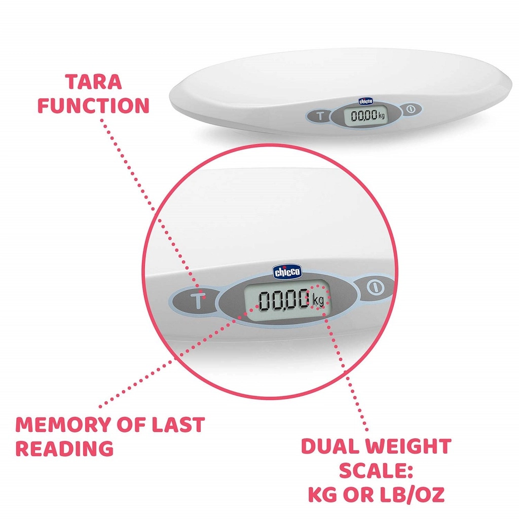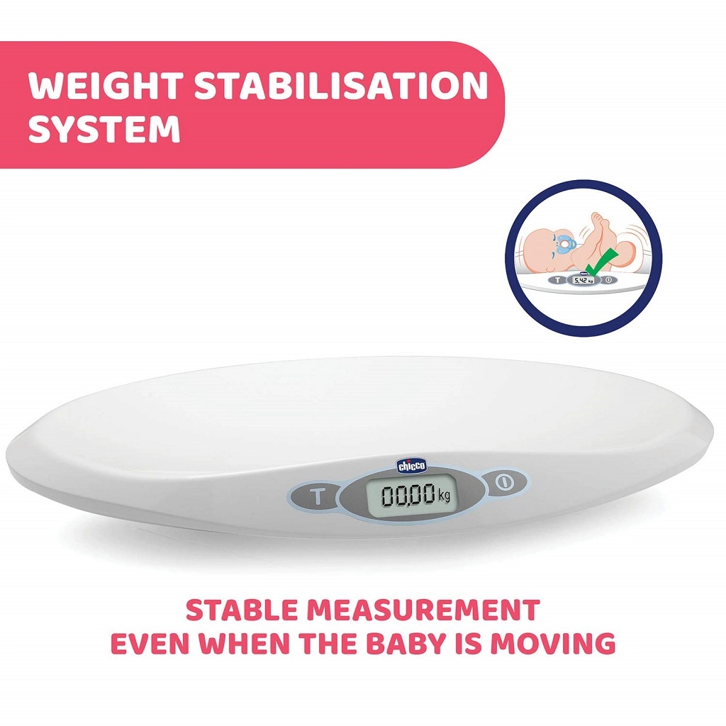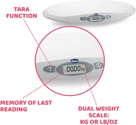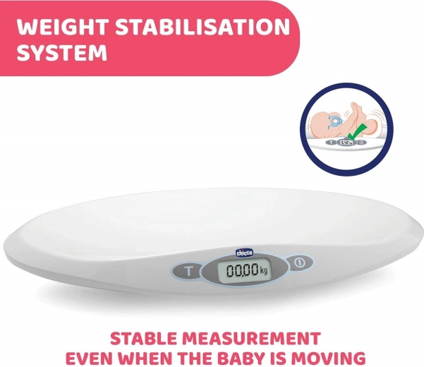 Cântarul digital pentru bebeluși Chicco Baby Comfort cântărește fiabil bebelușul din primele zile de viață. Oferă un interval de la 30 g până la 20 kg, măsurare precisă din 10 în 10 g, stabilizare a măsurării la mișcare și ecran LCD ușor de citit. Datorită memoriei ultimei măsurători și riglei integrate până la 55 cm, monitorizarea creșterii este simplă și comodă.