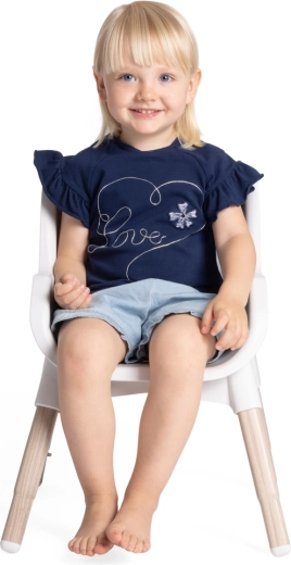 Centura în 5 puncte, picioarele stabile, bine depărtate, și inserția moale, detașabilă, asigură siguranță și confort la fiecare masă și joacă.