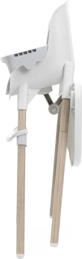 Întreținerea este foarte rapidă: suprafețele din plastic se șterg ușor, inserția textilă se poate scoate și spăla, iar tăvița detașabilă se curăță ușor sub jet de apă. Datorită greutății de doar 4,5 kg, scaunul se transportă ușor între încăperi. Când nu este folosit, se pliază compact și pe picioarele din spate oferă un practic spațiu de depozitare pentru accesorii.