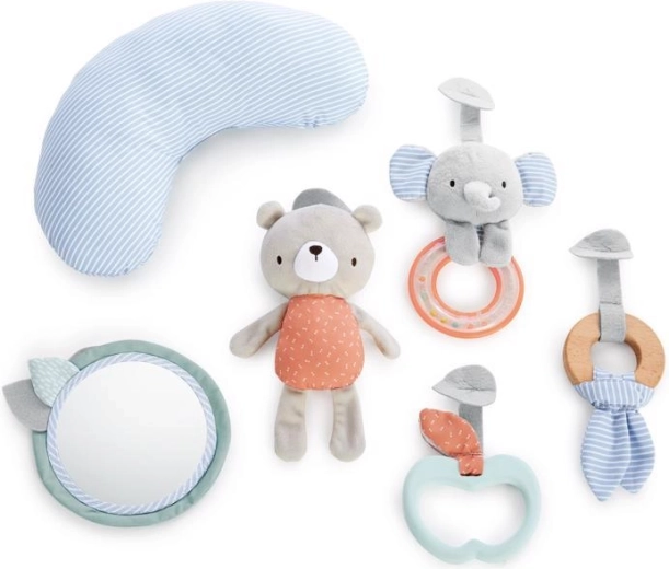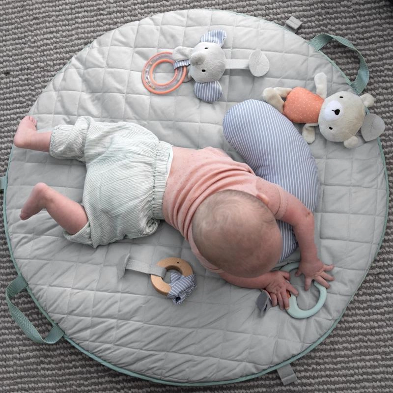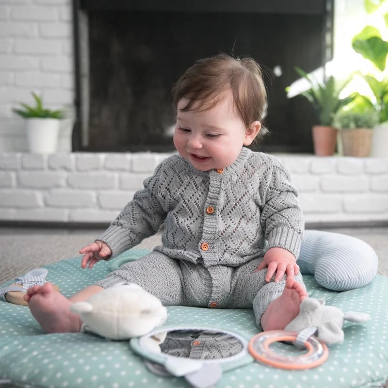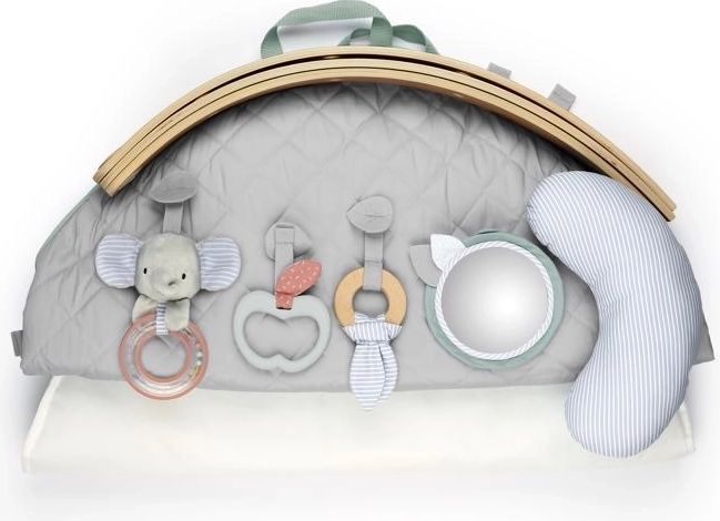 Covorașul este conceput pentru utilizare zilnică: se întreține ușor, se poate spăla la mașină, arcadele sunt detașabile, iar întregul set se pliază rapid datorită funcției Slim Fold – ideal pentru depozitare și transport. Este inclusă și o pernuță moale de sprijin pentru o poziție confortabilă pe burtică.