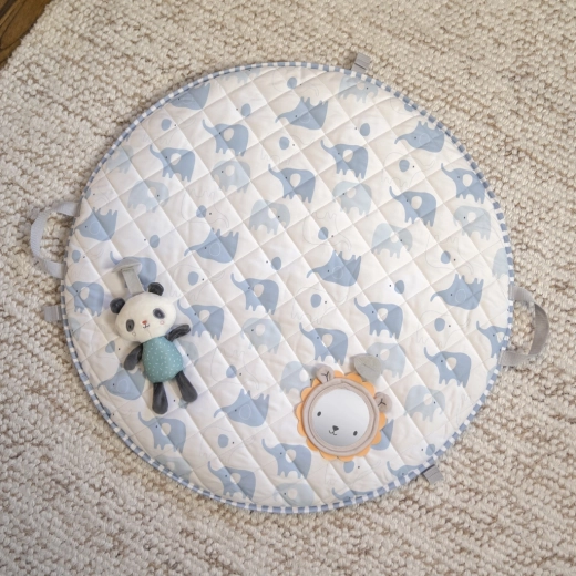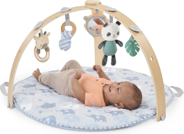 Saltea luxoasă, moale și spațioasă, cu textură ca de norișori, asigură confort bebelușului de la naștere până la 36 de luni. Imprimeul minimalist, dublu față, se potrivește perfect în orice interior, în timp ce bara solidă din lemn cu jucării susține coordonarea mână-ochi, prinderea și urmărirea.