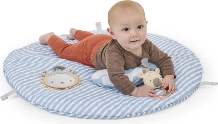 Susține dezvoltarea naturală încă din primele zile: stat confortabil culcat, tummy time pentru întărire cu perniță de sprijin și stat în șezut în siguranță, cu jucăriile la îndemână.