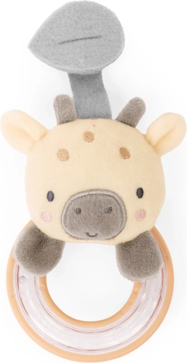 Inel de dentiție din silicon în formă de frunză, panda din pluș, inel din lemn, oglinjoară sigură cu leușor și zornăitoare cu girafă care încurajează prinderea și explorarea.