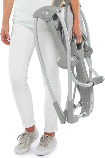 Structura pliabilă permite împachetarea rapidă a leagănului și transportul cu o singură mână – ideal pentru călătorii și economisirea spațiului acasă.