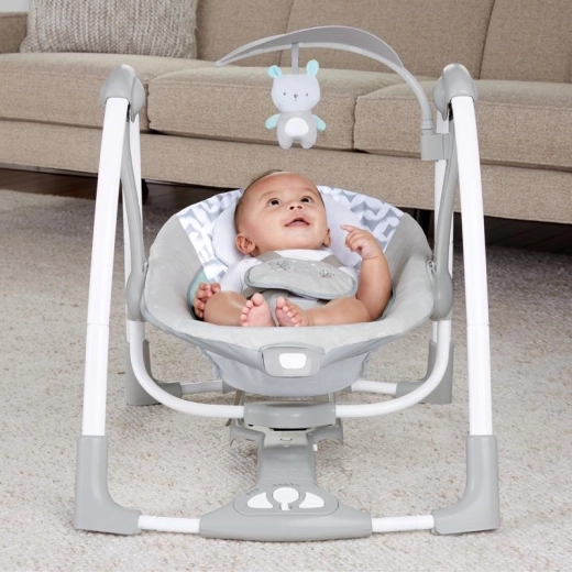 Eliberează-ți mâinile și oferă-i bebelușului confort și distracție. Leagănul convertibil INGENUITY Raylan permite reglarea a două poziții, iar datorită EasyLock îl treci dintr-un leagăn într-un șezlong stabil printr-o singură mișcare. Funcționarea silențioasă WhisperQuiet nu perturbă somnul, iar temporizatorul (30/45/60 min) ajută la setarea ritmului ideal al legănării liniștitoare.