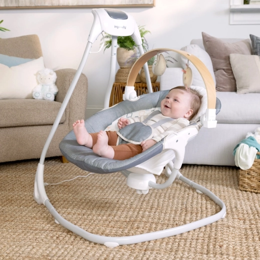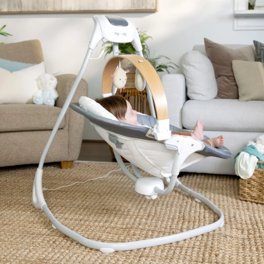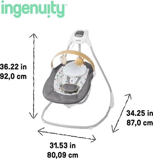 Leagănul Ingenuity SimpleComfort Parker aduce confort, liniște și stil în orice locuință. Scaunul rotativ la 180° permite legănare în trei direcții, astfel încât găsești cu ușurință poziția care se potrivește cel mai bine bebelușului tău. Motorul silențios WhisperQuiet, cele 6 viteze cu tehnologia TrueSpeed și temporizatorul cu oprire automată asigură o mișcare lină și neîntreruptă.