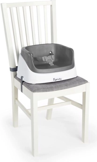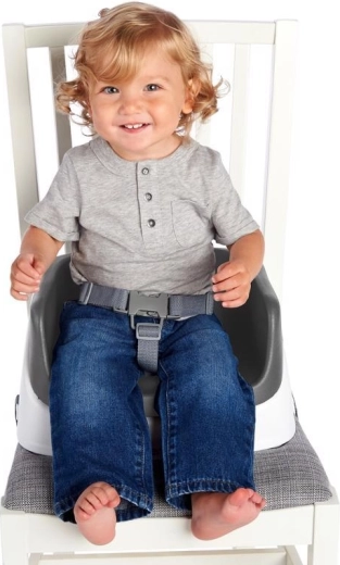 Datorită curelelor de siguranță robuste, înălțătorul se fixează ușor și stabil pe majoritatea scaunelor de masă. Centura de siguranță în 3 puncte menține copiii mai mici în siguranță pe loc și poate fi îndepărtată când copilul crește. Șezutul cu formă ergonomică oferă sprijin pentru spate și confort chiar și în timpul șederii prelungite.