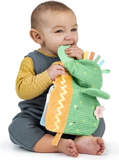 Prima carte liniştitoare şi jucăuşă pentru bebeluşi, cu motiv de cactus, oferă texturi foarte moi, jucărie de dentiţie fără BPA şi oglindă pentru auto-descoperire. Opt pagini pline de stimuli dezvoltă percepţia senzorială, simţul tactil şi motricitatea fină, în timp ce cureaua practică pentru cărucior asigură distracţie şi în deplasare.