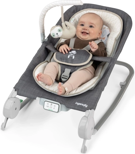 Liniștește bebelușul cu tehnologia unică Happy Belly, care masează ușor burtica și ajută la reducerea balonării și a agitației. Șezlongul INGENUITY se transformă fluid într-un balansoar, oferă vibrații, 20 de melodii și sunete din natură, o inserție moale și centuri sigure în 5 puncte. Se pliază plat cu ușurință și, datorită genții de transport, este ideal pentru călătorii.