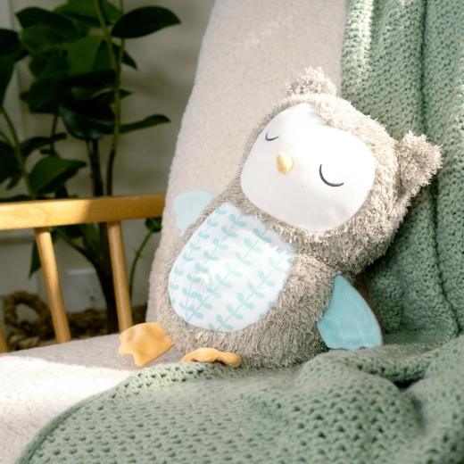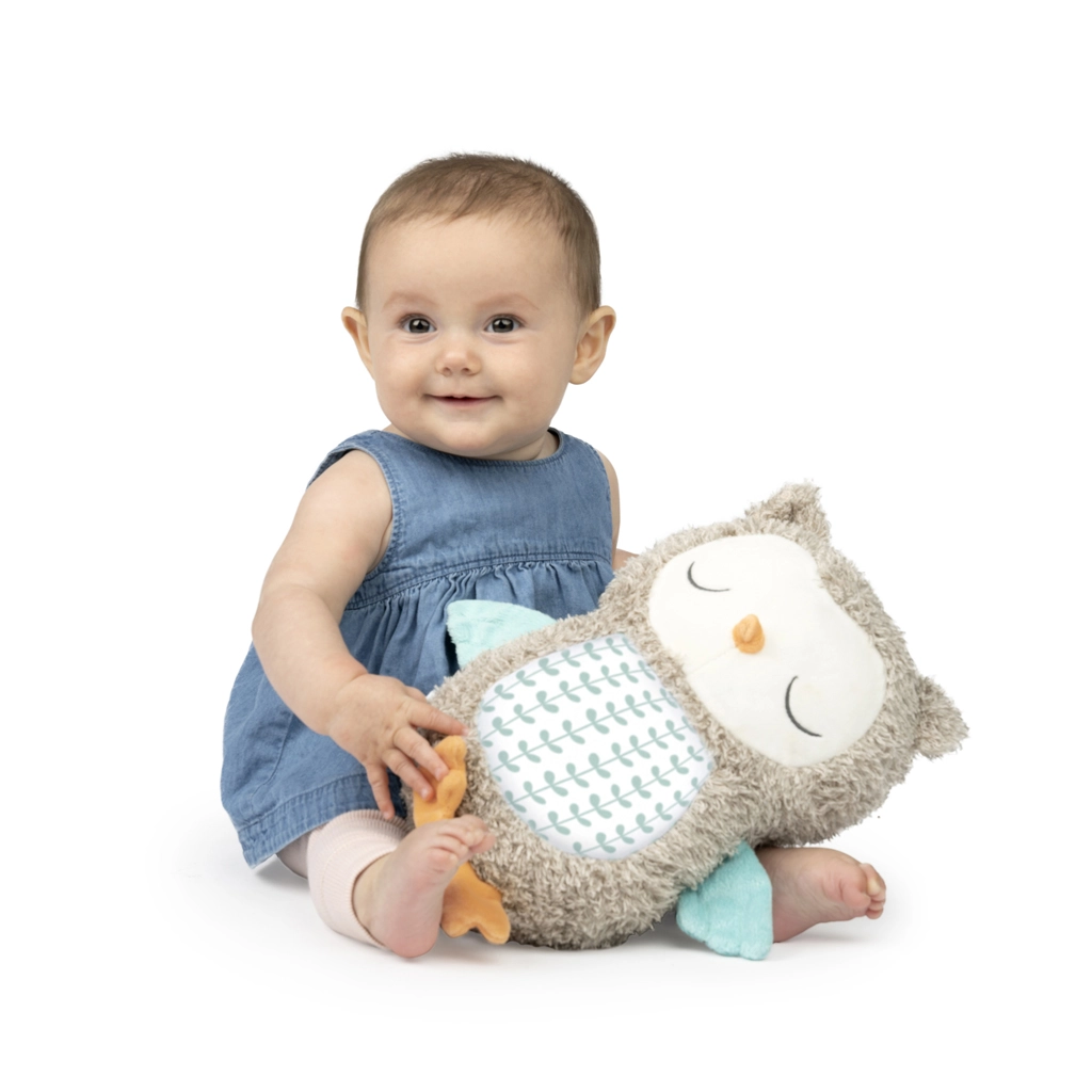Drăgălașa bufniță din pluș Nally de la Ingenuity este un companion moale și liniștitor pentru somn încă de la naștere. Datorită difuzorului Bluetooth ascuns în burtică, redă liniștitoare și sunete ale naturii cu temporizator 30/60/90 min, după care se oprește automat. Bufnița este sigură pentru cei mai mici (detalii brodate), se poate prinde de pătuț și, după scoaterea modulului, se spală ușor la mașină.