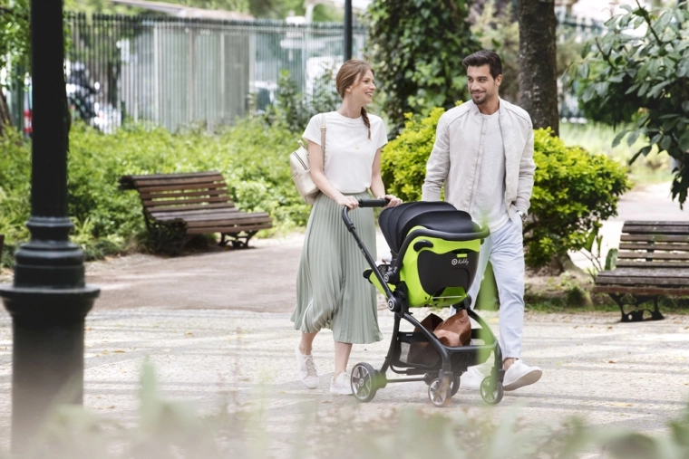 Protecțiile laterale și materialul flexibil din zona capului absorb forțele de impact. Inserția moale și copertina reglabilă asigură liniștea și confortul bebelușului.