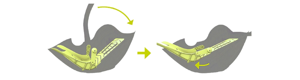 Mecanismul inteligent de reglare activat prin mâner permite copilului să stea perfect întins chiar și în timpul mersului cu mașina (când este utilizat cu baza ISOFIX). Susține respirația și poziția sănătoasă a coloanei încă de la naștere.