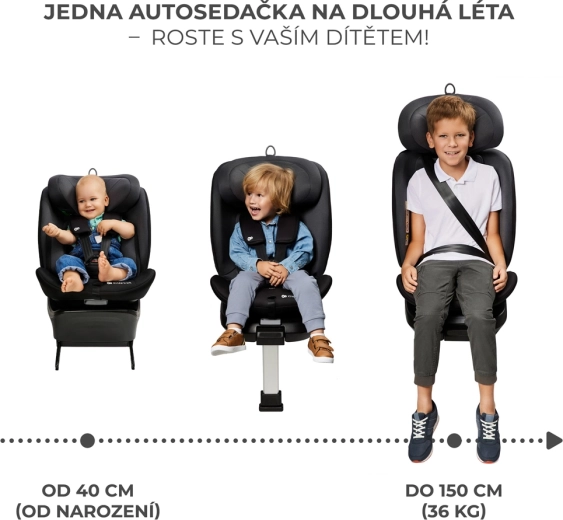 - Utilizare îndelungată – de la nou-născut până la aprox. 12 ani (40–150 cm).