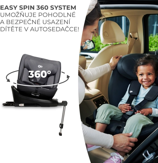 Scaunul auto I-360 i-Size crește odată cu copilul, de la 40 la 150 cm, acoperind grupele de la nou-născut până la școlari mai mari. Datorită sistemului EASY SPIN 360°, rotiți scaunul cu o singură mână spre dvs. pentru prindere rapidă și corectă. Instalarea ISOFIX cu indicatori vizuali și piciorul de sprijin (până la 100 cm) garantează o fixare fermă și sigură.
