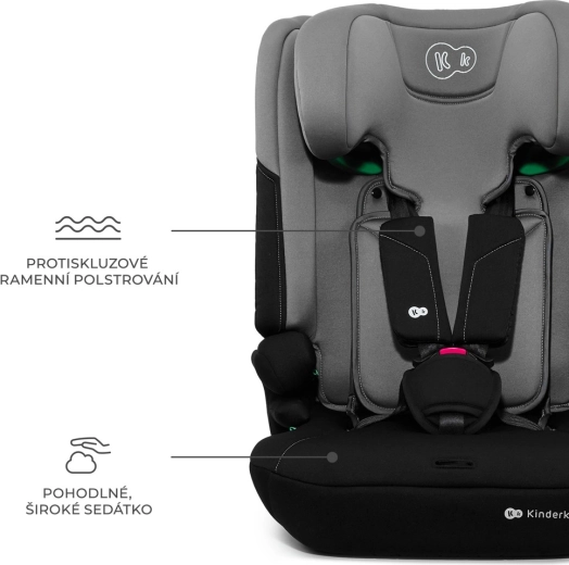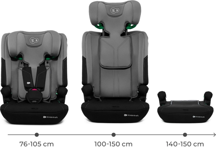 Scaunul auto Kinderkraft I-Comfy i-Size este o soluție universală pentru copii cu înălțimea de 76–150 cm (aprox. 15 luni până la 12 ani). Respectă strictul standard ECE R129 i-Size, inclusiv testele de impact lateral, și crește împreună cu copilul datorită sistemului EASY GROW pentru reglarea simultană a tetierelor și a centurilor. Siguranța maximă este asigurată de tetiera triplustrat H-GUARD, protecția laterală SPS și ghidajul centurii pelviene pentru o poziționare corectă a centurii. Confortul este îmbunătățit de spătarul reglabil în 10 trepte, șezutul lat și centurile în 5 puncte cu pernițe moi. De la 140 cm înălțime poate fi folosit și ca înălțător.